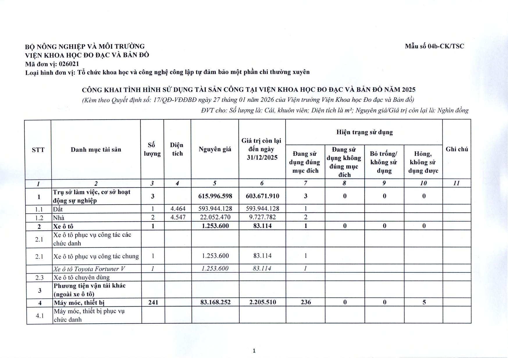 Cập nhật: 26/02/2026Quyết định công khai tài sản công năm 2025 - Tình hình sử dụng và xử lý tài sản công năm 2025