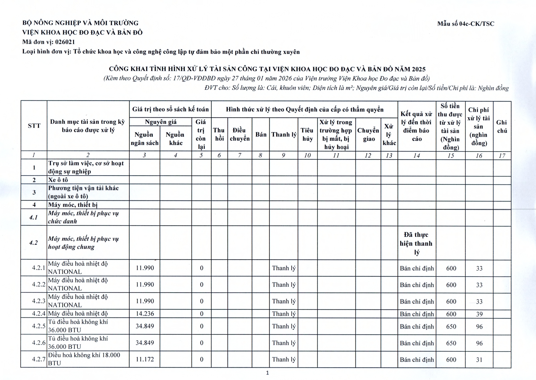 CÔNG KHAI TÀI SẢN CÔNG NĂM 2025