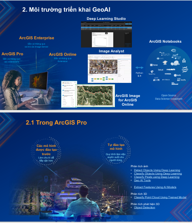 - Sử dụng các công cụ phổ biến như: ArcGIS, QGIS, Google Earth Engine, Python (với thư viện như GeoPandas, TensorFlow, PyTorch…), v.v.