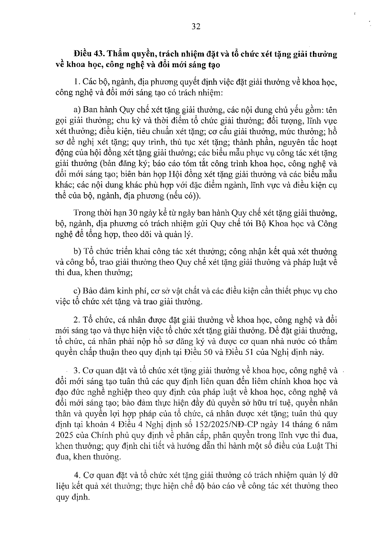 Cập nhật: 09/12/2025QUY ĐỊNH CHI TIẾT VÀ HƯỚNG DẪN MỘT SỐ ĐIỀU CỦA LUẬT KHOA HỌC, CÔNG NGHỆ VÀ ĐỔI MỚI SÁNG TẠO VỀ CƠ CHẾ TỰ CHỦ, TỰ CHỊU TRÁCH NHIỆM CỦA TỔ CHỨC KHOA HỌC VÀ CÔNG NGHỆ CÔNG LẬP, NHÂN LỰC, NHÂN TÀI VÀ GIẢI THƯỞNG TRONG LĨNH VỰC KHOA HỌC, CÔNG NGHỆ VÀ ĐỔI MỚI SÁNG TẠO